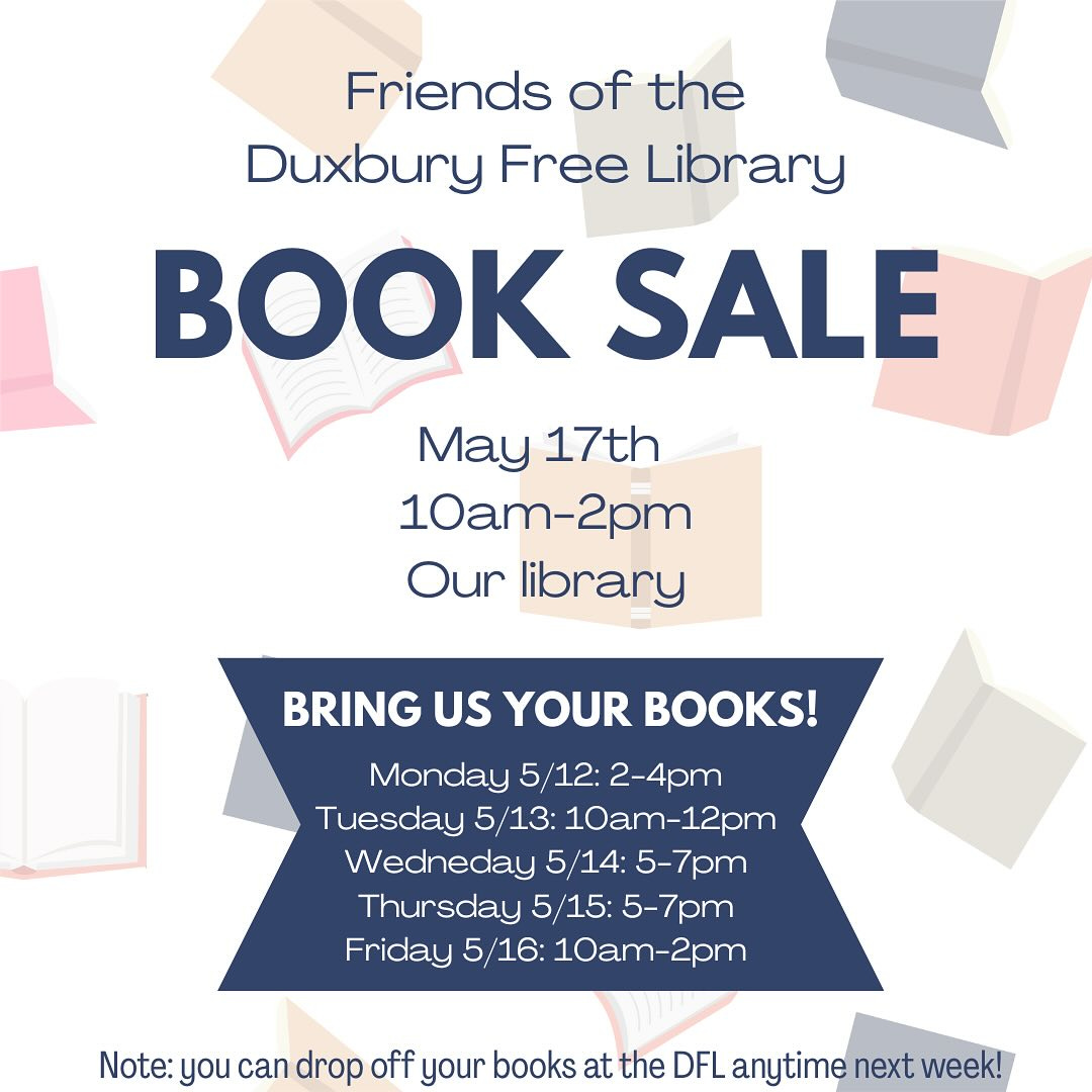If you want to stock up on your summer reading without breaking the bank, be sure to mark your calendar for the upcoming Duxbury Free Library book sale! According to the Friends of the Duxbury Free Library, on Saturday, May 17th, from 10 AM until 2 PM, you will have the opportunity to both donate in the coming week and then purchase books at their upcoming community book sale event. They've announced multiple convenient drop-off times throughout the week leading up to the sale, which are as follows:
