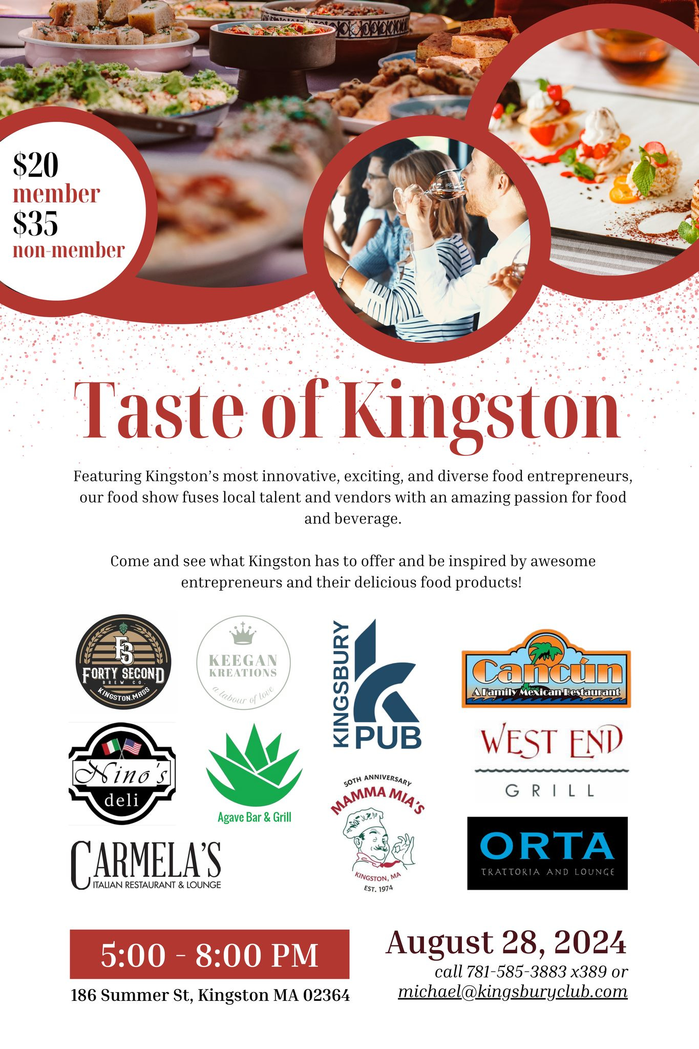 For the most up-to-date information about the Taste of Kingston event, visit the Kingsbury Club & Spa's Facebook page at www.facebook.com/kingsburyclub or reach out to them directly by calling 781-585-3883.