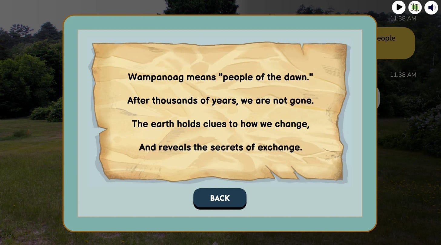 As they hunt for clues and solve riddles, players are “transported to Patuxet, the pre-European homeland of the Wampanoag,” and immersed in a story of cultural change that spans 12,000 years.